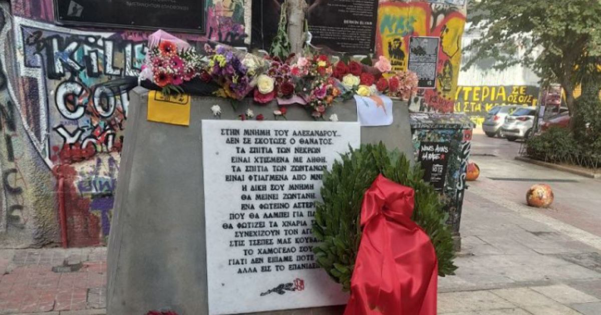Και συνεχίζει: «Στη μνήμη του Αλέξανδρου. Δεν σε σκότωσε ο θάνατος. Τα σπίτια των νεκρών είναι χτισμένα με λήθη. Τα σπίτια των ζωντανών είναι φτιαγμένα από μνήμη. Η δική σου μνήμη θα μείνει ζωντανή, ένα φωτεινό αστέρι που θα λάμπει για πάτα. Θα φωτίζει τα χνάρια σε όσους συνεχίζουν τον αγώνα. Στις τσέπες μας κουβαλάμε το χαμόγελό σου, γιατί δεν είπαμε ποτέ αντίο αλλά ‘εις το επανιδείν’»