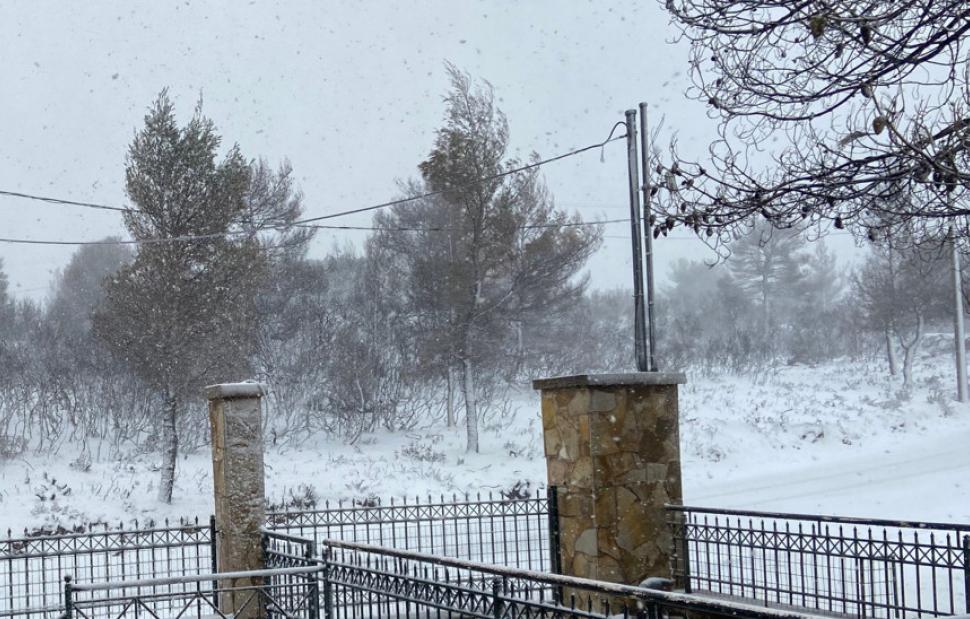 Συγκεκριμένα, πυκνό χιόνι πέφτει στη Μαλακάσα, την Ιπποκράτειο Πολιτεία και τα Βίλια.
