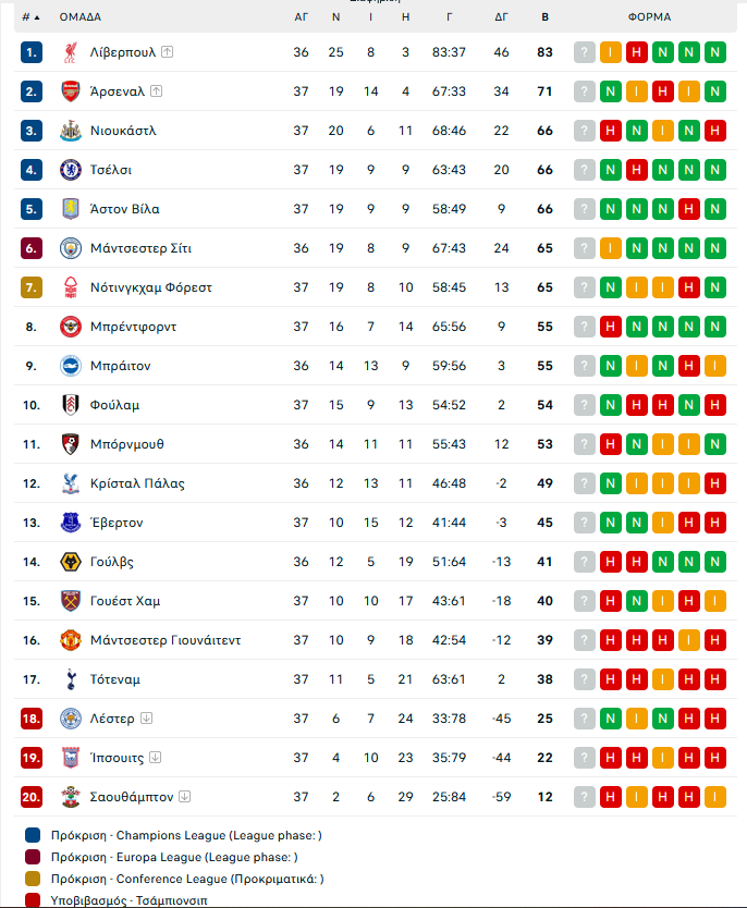 Ο τίτλος φέτος στην Premier League κρίθηκε από νωρίς καθώς η Λίβερπουλ ήταν η πιο σταθερή ομάδα από όλες και δίκαια έφτασε στην κατάκτηση του 20ου πρωταθλήματος της ιστορίας της. Από εκεί και κάτω όμως γίνεται ένας χαμός ενόψει της τελευταίας αγωνιστικής όσον αφορά στα εισιτήρια που οδηγούν στο Champions League της νέας σεζόν.