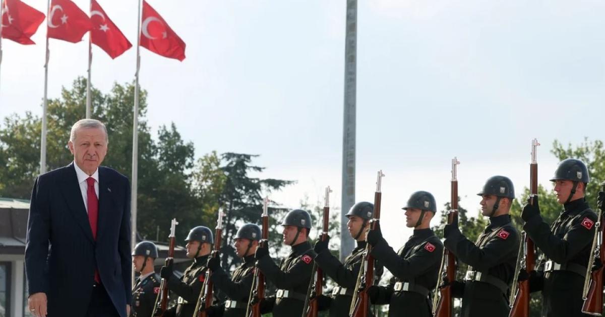 Τον Πρόεδρο της Τουρκίας υποδέχθηκε ο Τουρκοκύπριος ηγέτης, Ερσίν Ταράρ.