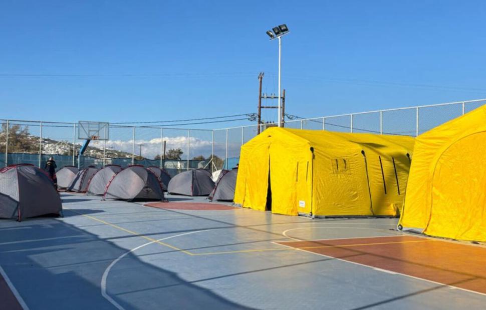 Τοποθετήθηκαν οι πρώτες σκηνές σε ανοιχτούς χώρους στη Σαντορίνη