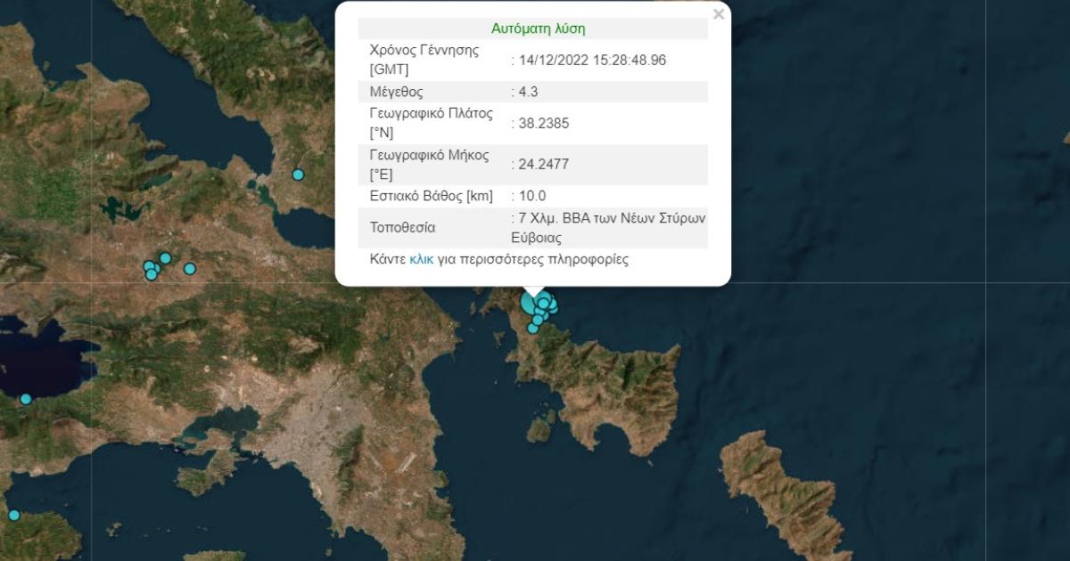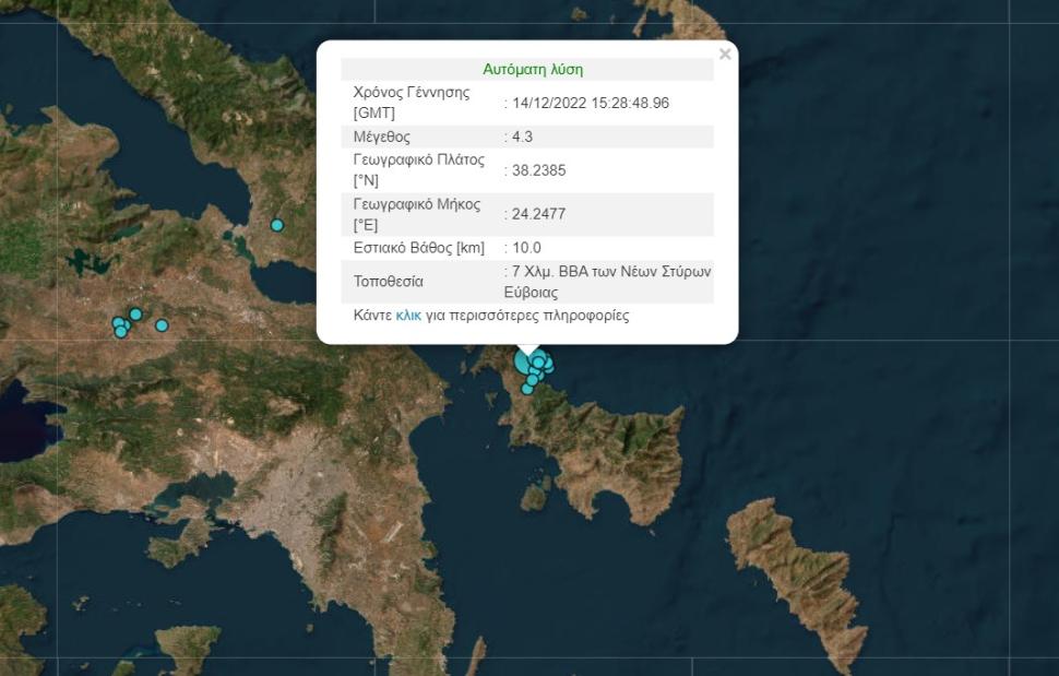 Σεισμός μεγέθους 4,3 βαθμών της κλίμακας Ρίχτερ σημειώθηκε λίγο πριν από λίγο στην Νότια Εύβοια.
