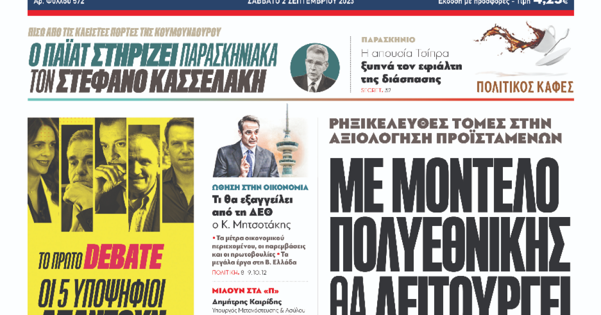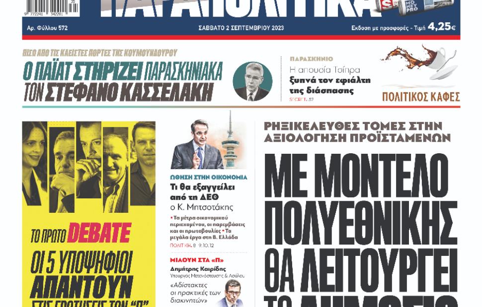 Με τίτλο: «Με μοντέλο πολυεθνικής θα λειτουργεί το δημόσιο» κυκλοφορούν αύριο, Σάββατο 02 Σεπτεμβρίου, τα «Παραπολιτικά».