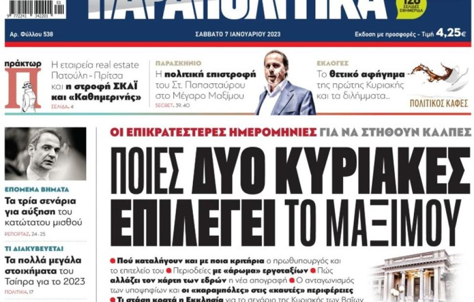 Με τίτλο: «Ποιες δύο Κυριακές επιλέγει το Μαξίμου» κυκλοφορούν, αύριο, Σάββατο 7 Ιανουαρίου τα «Παραπολιτικά».