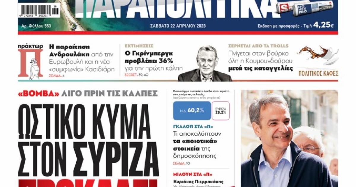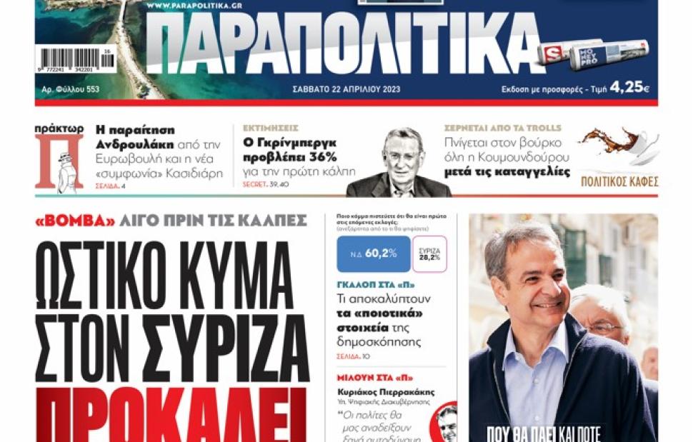 Αύριο, Σάββατο 22 Απριλίου, η εφημερίδα ΠΑΡΑΠΟΛΙΤΙΚΑ κυκλοφορεί σε όλα τα περίπτερα της χώρας με πλούσια θεματολογία, πολλές αποκλειστικότητες, αλλά και με αποκαλυπτικά θέματα και ρεπορτάζ!