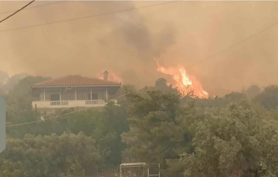 Στη Νέα Ζωή Μάνδρας η φωτιά έχει φθάσει κυριολεκτικά στα σπίτια. Δείτε την παρακάτω φωτογραφία: