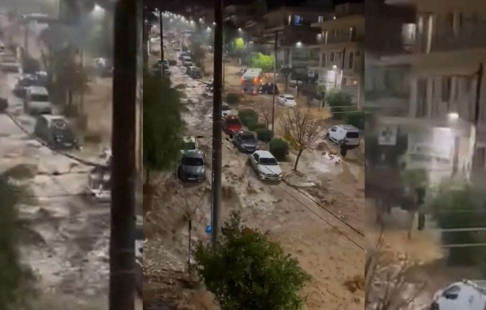 Στην Άνω Γλυφάδα οι δρόμοι έχουν γίνει ορμητικοί χείμαρροι παρασύροντας ακόμη και τα αυτοκίνητα, που το ένα πέφτει πάνω στο άλλο.