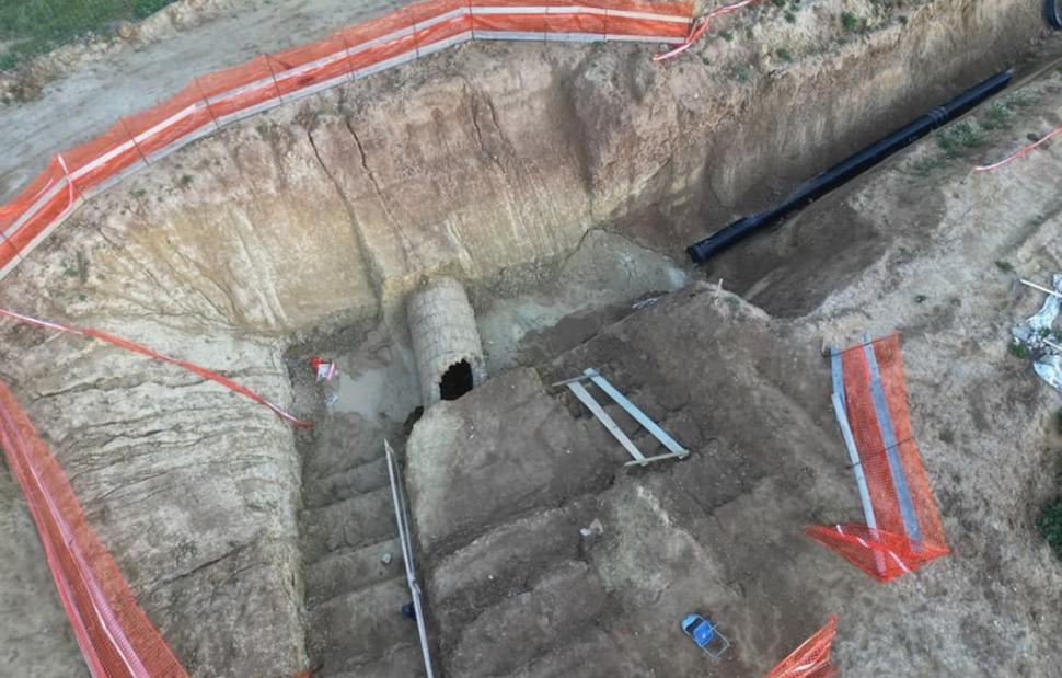 Σταδιακά συνειδητοποίησαν ότι είχαν ξεθάψει μια μεγάλη δομή που έμοιαζε με αρχαίο υδραγωγείο. Έπειτα κάλεσαν αρχαιολόγους.