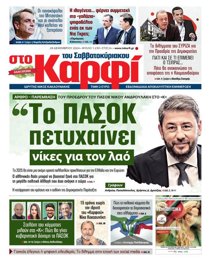 Μη χάσετε το Σάββατο 28 Δεκεμβρίου 2024 το αποκαλυπτικό «Καρφί»