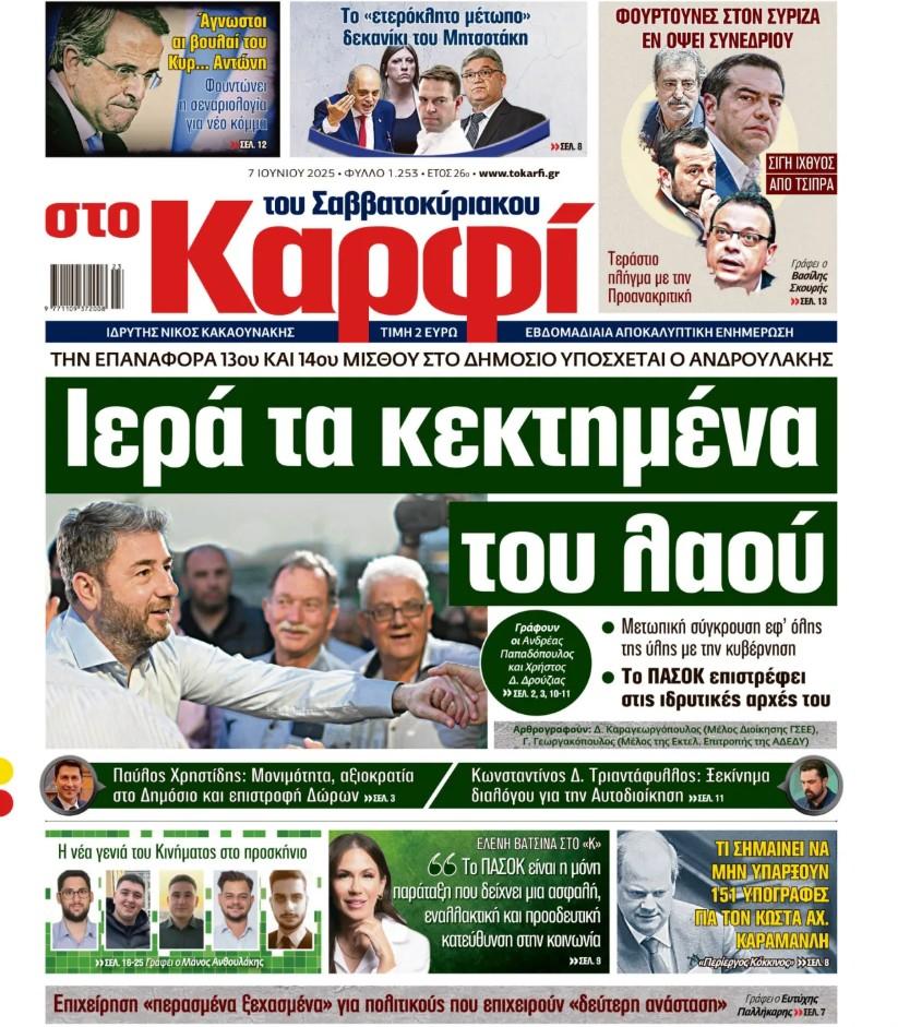 Μη χάσετε το Σάββατο 7 Ιουνίου 2025 το αποκαλυπτικό «Καρφί» που κυκλοφορεί σε όλα τα περίπτερα της χώρας με πλούσια θεματολογία και πολλές αποκλειστικότητες.