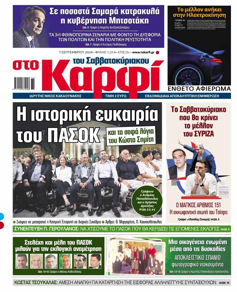Μη χάσετε το Σάββατο 7 Σεπτεμβρίου 2024 το αποκαλυπτικό «ΚΑΡΦΙ» που κυκλοφορεί σε όλα τα περίπτερα της χώρας με πλούσια θεματολογία και πολλές αποκλειστικότητες.