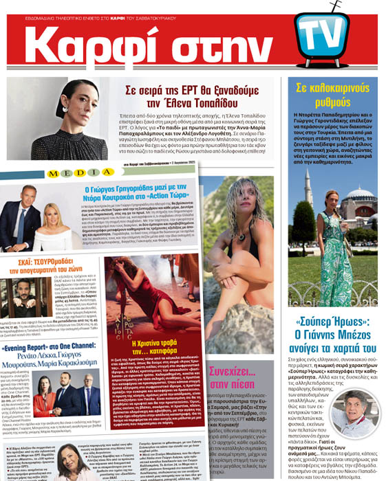 • ΚΑΡΦΙ στην TV. Μάθετε όλες τις εξελίξεις στα Media, στις τηλεοπτικές σειρές καθώς και τις ταινίες που θα προβληθούν – Ακόμη ενημερωθείτε για Τέχνες και Πολιτισμό