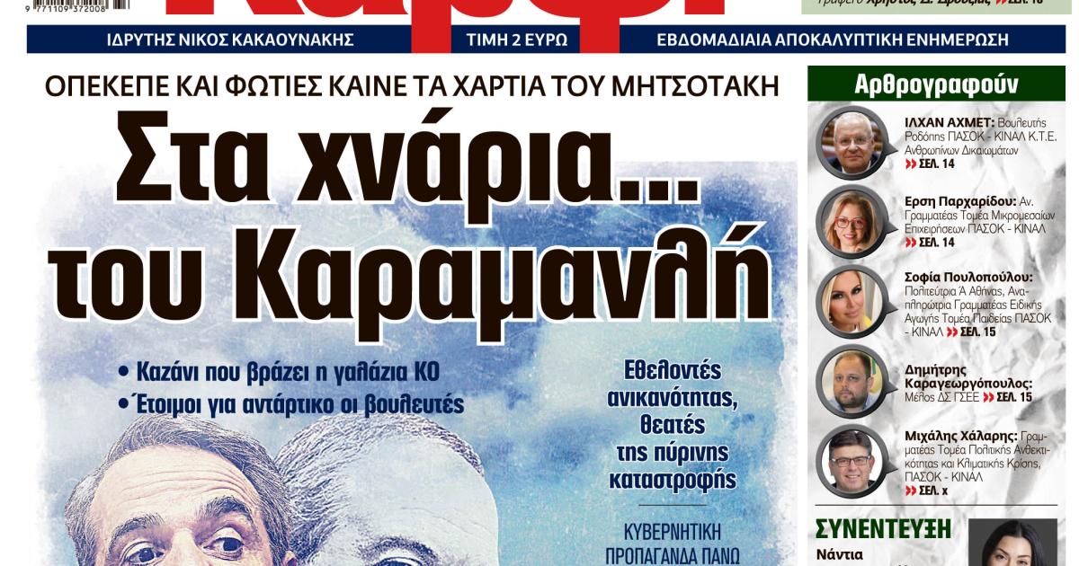 Μη χάσετε το Σάββατο 16 Αυγούστου 2025 το αποκαλυπτικό «ΚΑΡΦΙ» που κυκλοφορεί σε όλα τα περίπτερα της χώρας με πλούσια θεματολογία και πολλές αποκλειστικότητες.