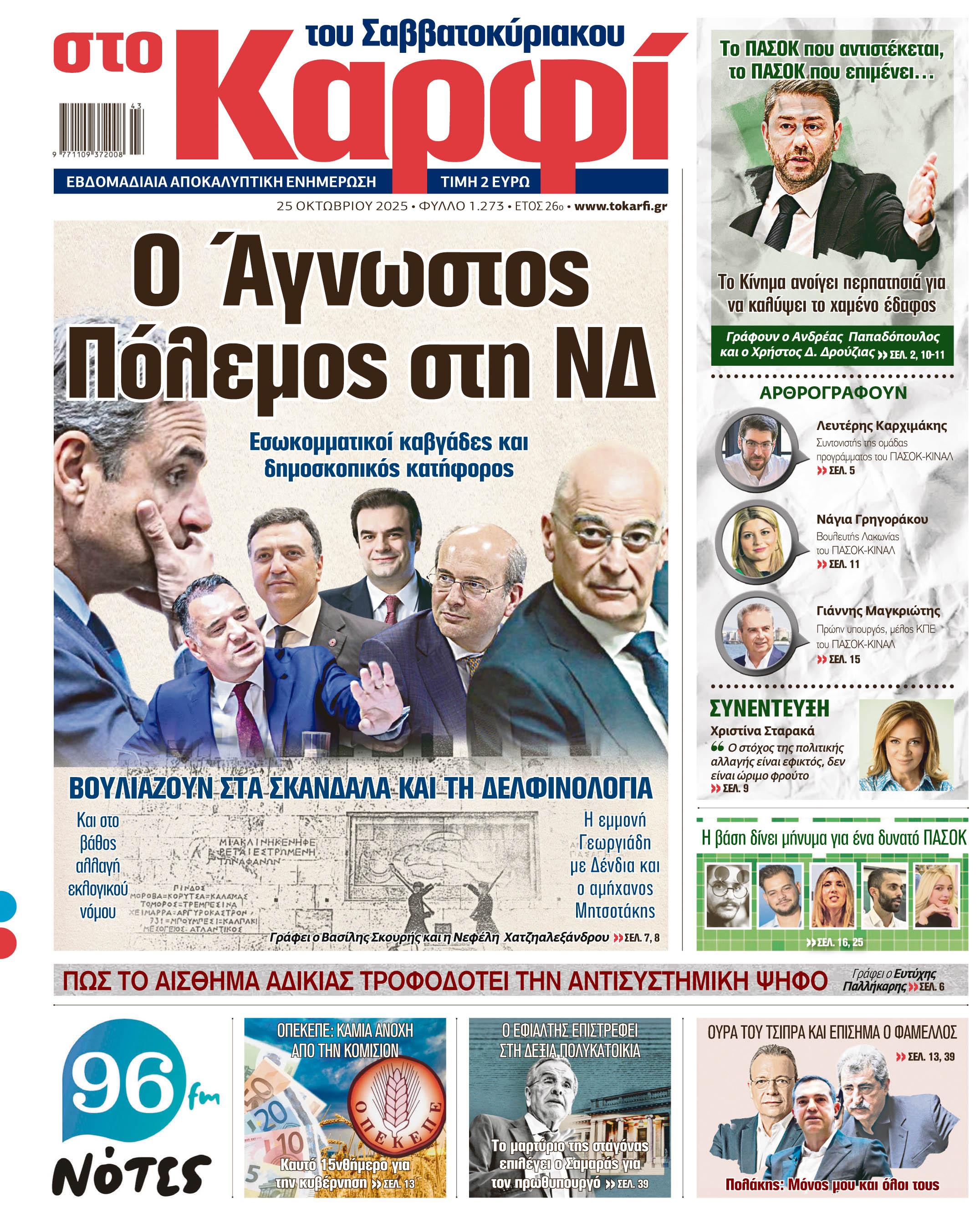 Μη χάσετε το Σάββατο 25 Οκτωβρίου 2025 το αποκαλυπτικό «Καρφί» που κυκλοφορεί σε όλα τα περίπτερα της χώρας με πλούσια θεματολογία και πολλές αποκλειστικότητες.