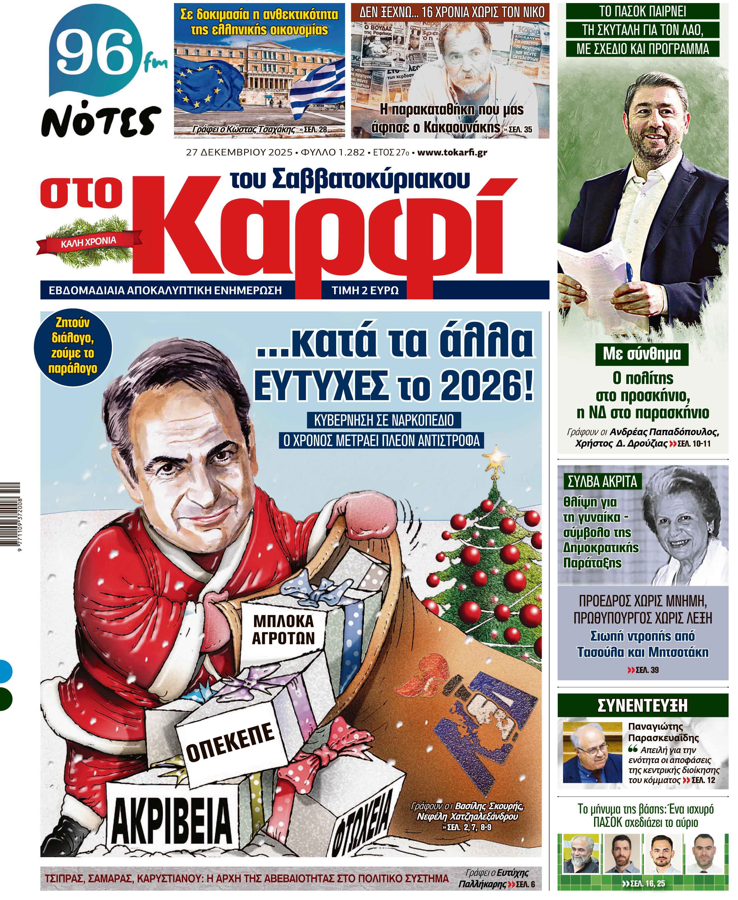 Μη χάσετε το Σάββατο 27 Δεκεμβρίου 2025 το αποκαλυπτικό «ΚΑΡΦΙ» που κυκλοφορεί σε όλα τα περίπτερα της χώρας με