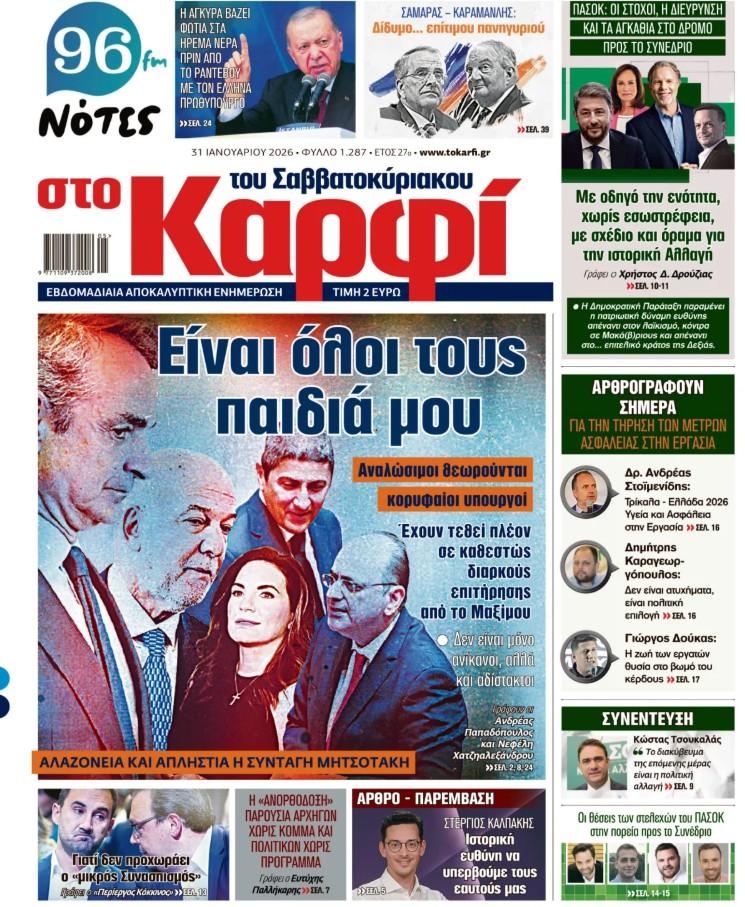 Μη χάσετε το Σάββατο 31 Ιανουαρίου 2026 το αποκαλυπτικό «Καρφί» που κυκλοφορεί σε όλα τα περίπτερα της χώρας με πλούσια θεματολογία και πολλές αποκλειστικότητες.