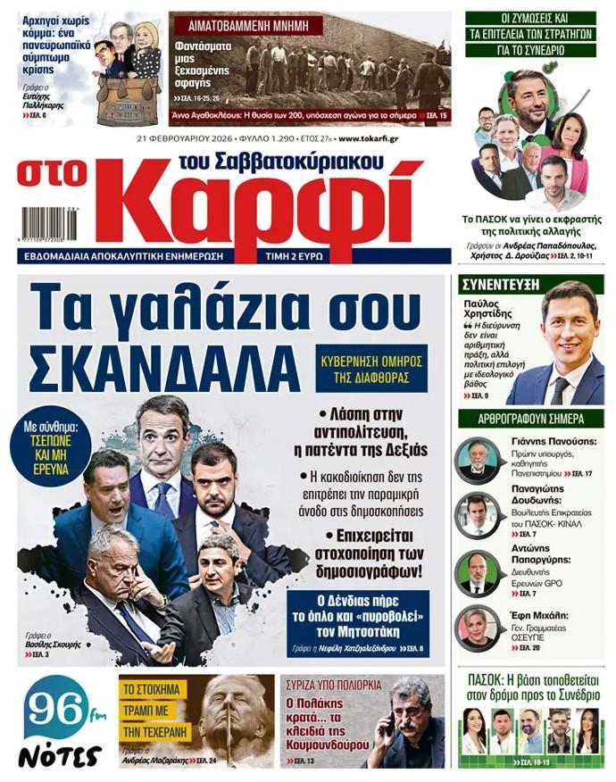 Μη χάσετε το Σάββατο 21 Φεβρουαρίου 2026 το αποκαλυπτικό «Καρφί» που κυκλοφορεί σε όλα τα περίπτερα της χώρας με πλούσια θεματολογία και πολλές αποκλειστικότητες.