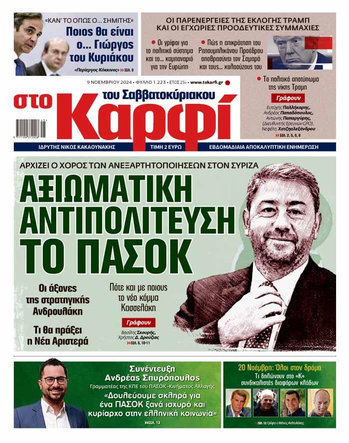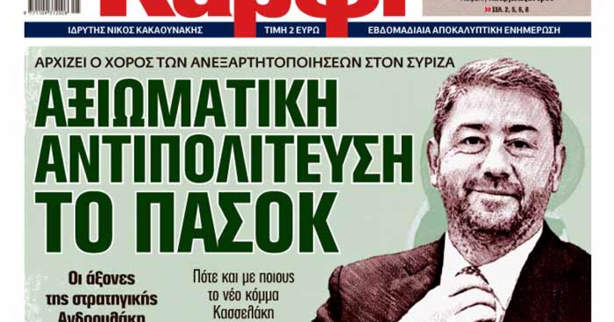 Μη χάσετε το Σάββατο 9 Νοεμβρίου 2024 το αποκαλυπτικό «ΚΑΡΦΙ» που κυκλοφορεί σε όλα τα περίπτερα της χώρας με πλούσια θεματολογία και πολλές αποκλειστικότητες.