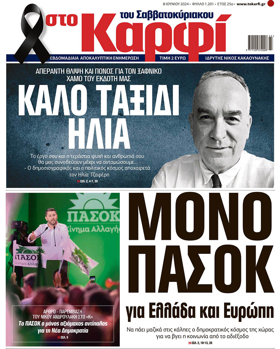 Μη χάσετε το Σάββατο 8 Ιουνίου 2024 το αποκαλυπτικό «ΚΑΡΦΙ» που κυκλοφορεί σε όλα τα περίπτερα της χώρας με πλούσια θεματολογία και πολλές αποκλειστικότητες.