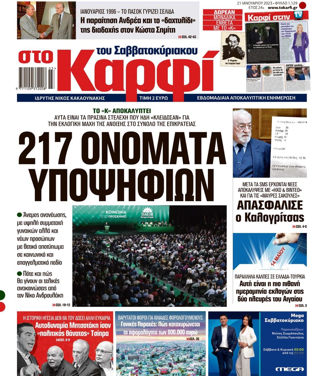 Μη χάσετε το Σάββατο 21 Ιανουαρίου 2023 το αποκαλυπτικό «ΚΑΡΦΙ» που κυκλοφορεί σε όλα τα περίπτερα της χώρας με πλούσια θεματολογία και πολλές αποκλειστικότητες.