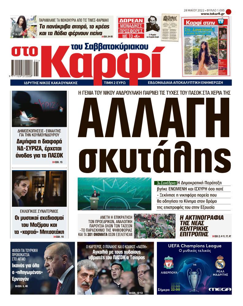 Μη χάσετε το Σάββατο 28 Μαΐου 2022 το αποκαλυπτικό «ΚΑΡΦΙ» που κυκλοφορεί σε όλα τα περίπτερα της χώρας με πλούσια θεματολογία και πολλές αποκλειστικότητες.