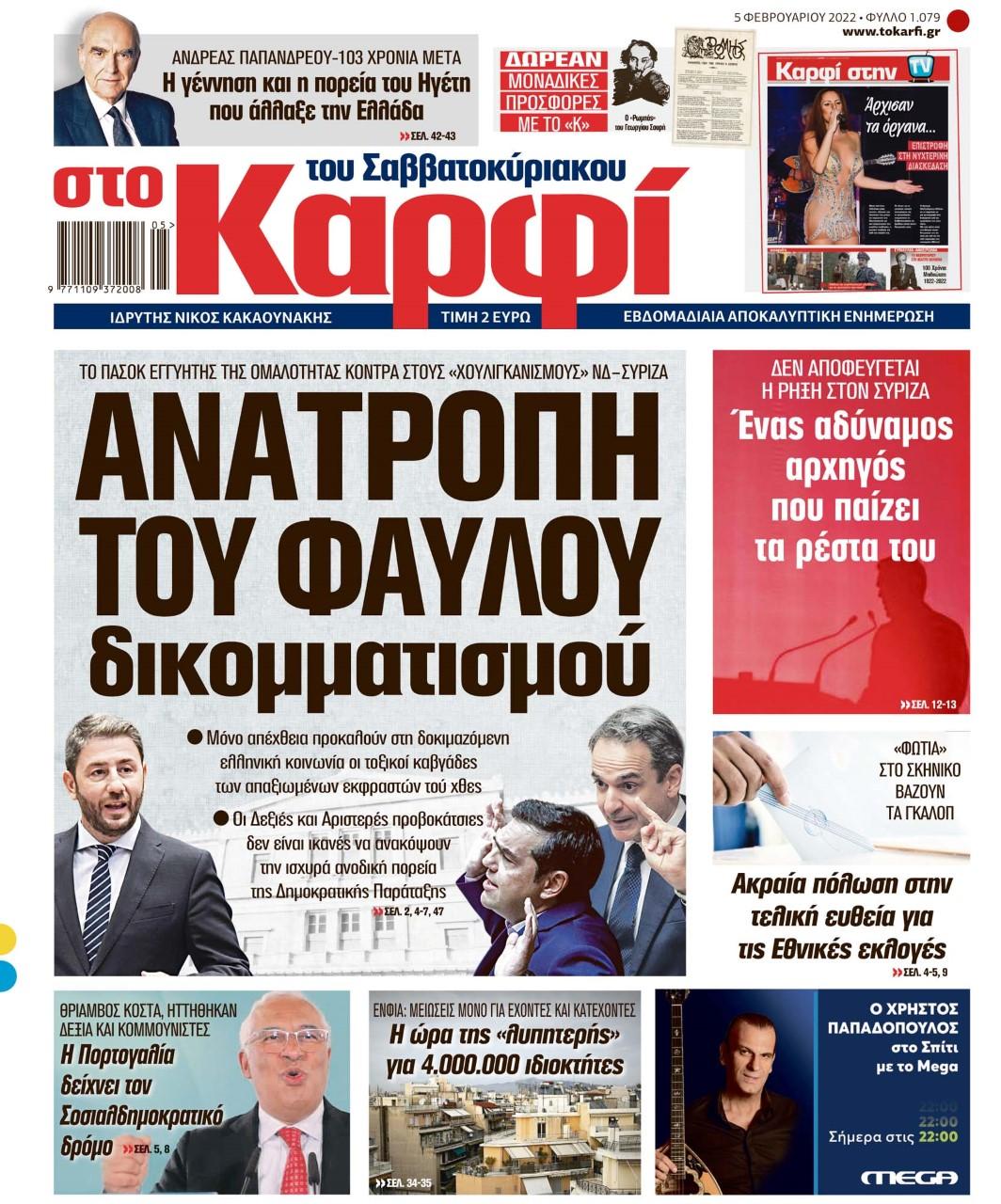 Μη χάσετε αυτό το Σάββατο 5 Φεβρουαρίου 2022 το αποκαλυπτικό «ΚΑΡΦΙ» που κυκλοφορεί σε όλα τα περίπτερα της χώρας με πλούσια θεματολογία και πολλές αποκλειστικότητες.