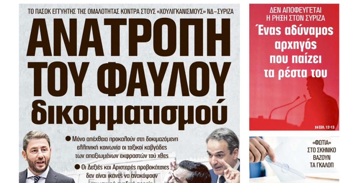 TO ΠΑΣΟΚ ΕΓΓΥΗΤΗΣ ΤΗΣ ΟΜΑΛΟΤΗΤΑΣ ΚΟΝΤΡΑ ΣΤΟΥΣ «ΧΟΥΛΙΓΚΑΝΙΣΜΟΥΣ» ΝΔ – ΣΥΡΙΖΑ