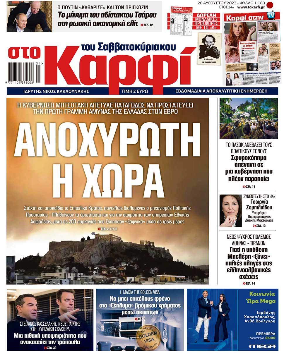 Μη χάσετε το Σάββατο 26 Αυγούστου 2023 το αποκαλυπτικό «ΚΑΡΦΙ» που κυκλοφορεί σε όλα τα περίπτερα της χώρας με πλούσια θεματολογία και πολλές αποκλειστικότητες.