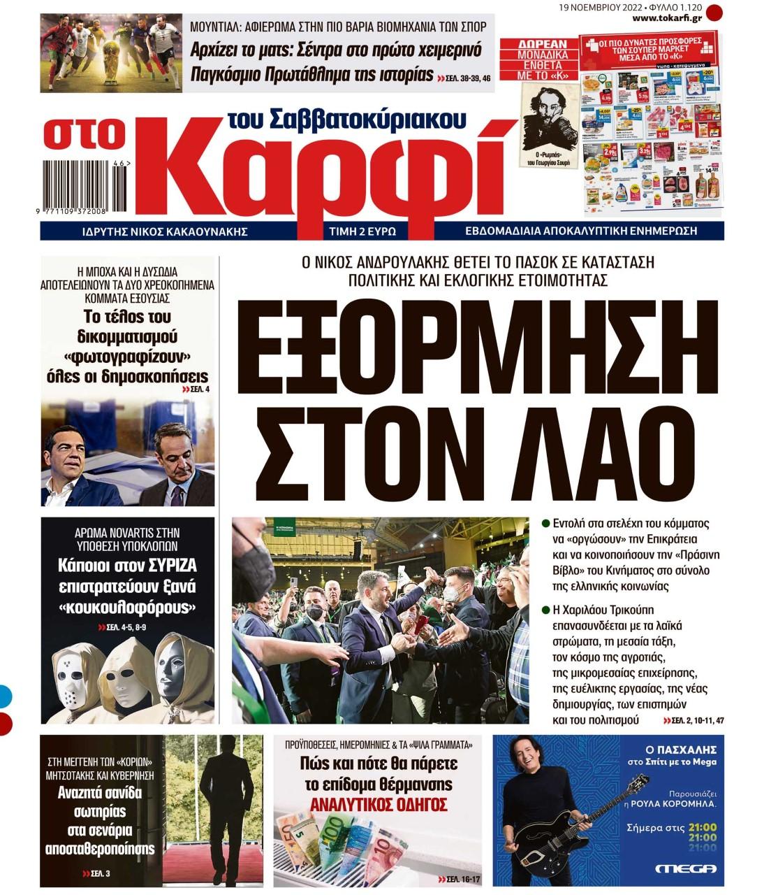 Μη χάσετε το Σάββατο 19 Νοεμβρίου 2022 το αποκαλυπτικό «ΚΑΡΦΙ» που κυκλοφορεί σε όλα τα περίπτερα της χώρας με πλούσια θεματολογία και πολλές αποκλειστικότητες.
