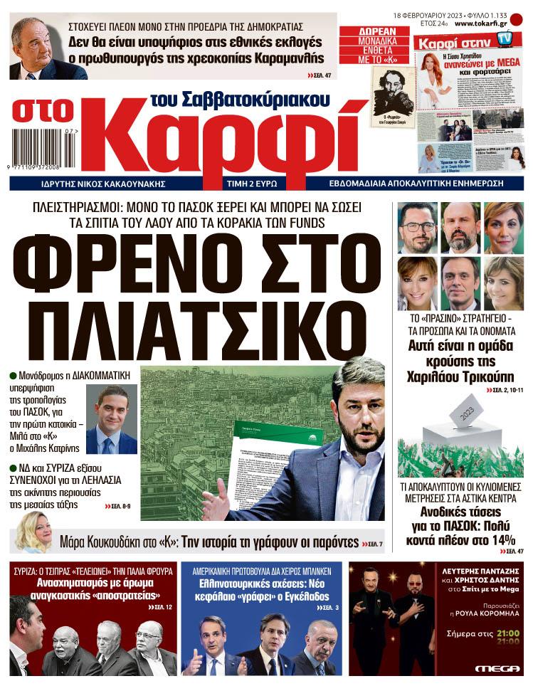 Μη χάσετε το Σάββατο 18 Φεβρουαρίου 2023 το αποκαλυπτικό «ΚΑΡΦΙ» που κυκλοφορεί σε όλα τα περίπτερα της χώρας με πλούσια θεματολογία και πολλές αποκλειστικότητες.
