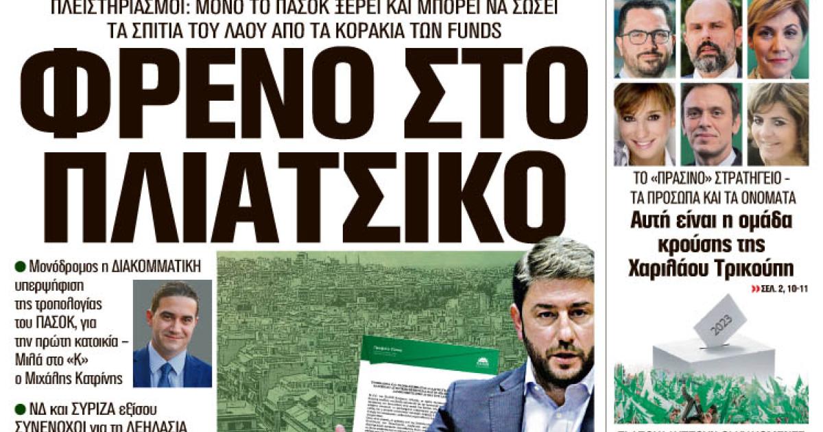 ΠΛΕΙΣΤΗΡΙΑΣΜΟΙ: ΜΟΝΟ ΤΟ ΠΑΣΟΚ ΞΕΡΕΙ ΚΑΙ ΜΠΟΡΕΙ ΝΑ ΣΩΣΕΙ ΤΑ ΣΠΙΤΙΑ ΤΟΥ ΛΑΟΥ ΑΠΟ ΤΑ ΚΟΡΑΚΙΑ ΤΩΝ FUNDS