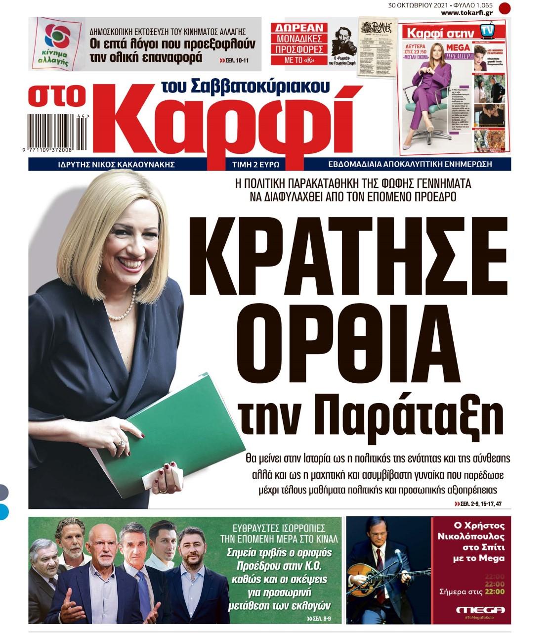 Μη χάσετε το Σάββατο 30 Οκτωβρίου 2021, το αποκαλυπτικό «ΚΑΡΦΙ» που κυκλοφορεί σε όλα τα περίπτερα της χώρας με πλούσια θεματολογία και πολλές αποκλειστικότητες.
