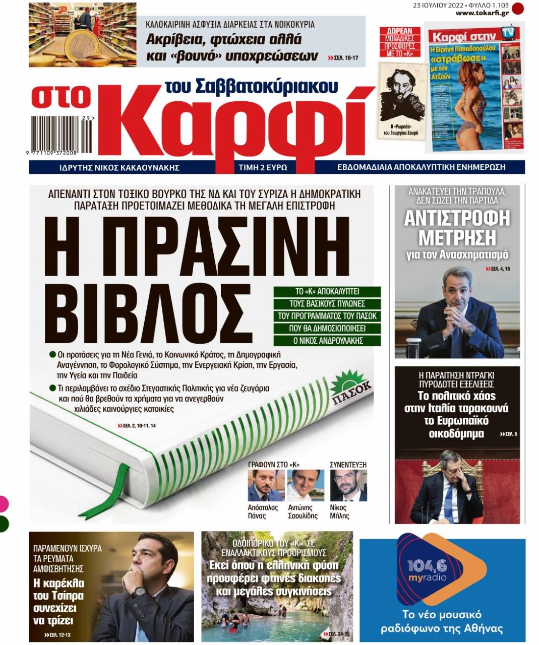 Μη χάσετε το Σάββατο 23 Ιουλίου 2022 το αποκαλυπτικό «ΚΑΡΦΙ» που κυκλοφορεί σε όλα τα περίπτερα της χώρας με πλούσια θεματολογία και πολλές αποκλειστικότητες.
