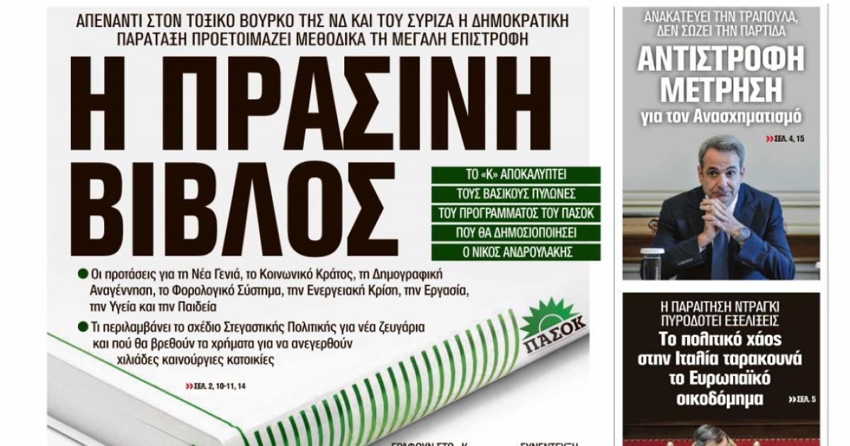 ΤΟ «Κ» ΑΠΟΚΑΛΥΠΤΕΙ ΤΟΥΣ ΒΑΣΙΚΟΥΣ ΠΥΛΩΝΕΣ ΤΟΥ ΠΡΟΓΡΑΜΜΑΤΟΣ ΤΟΥ ΠΑΣΟΚ ΠΟΥ ΘΑ ΔΗΜΟΣΙΟΠΟΙΗΣΕΙ Ο ΝΙΚΟΣ ΑΝΔΡΟΥΛΑΚΗΣ
