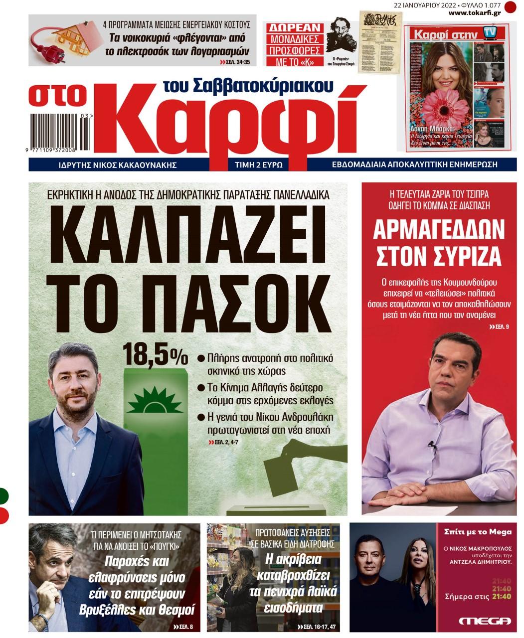 Μη χάσετε αυτό το Σάββατο 22 Ιανουαρίου 2022 το αποκαλυπτικό «ΚΑΡΦΙ» που κυκλοφορεί σε όλα τα περίπτερα της χώρας με πλούσια θεματολογία και πολλές αποκλειστικότητες.