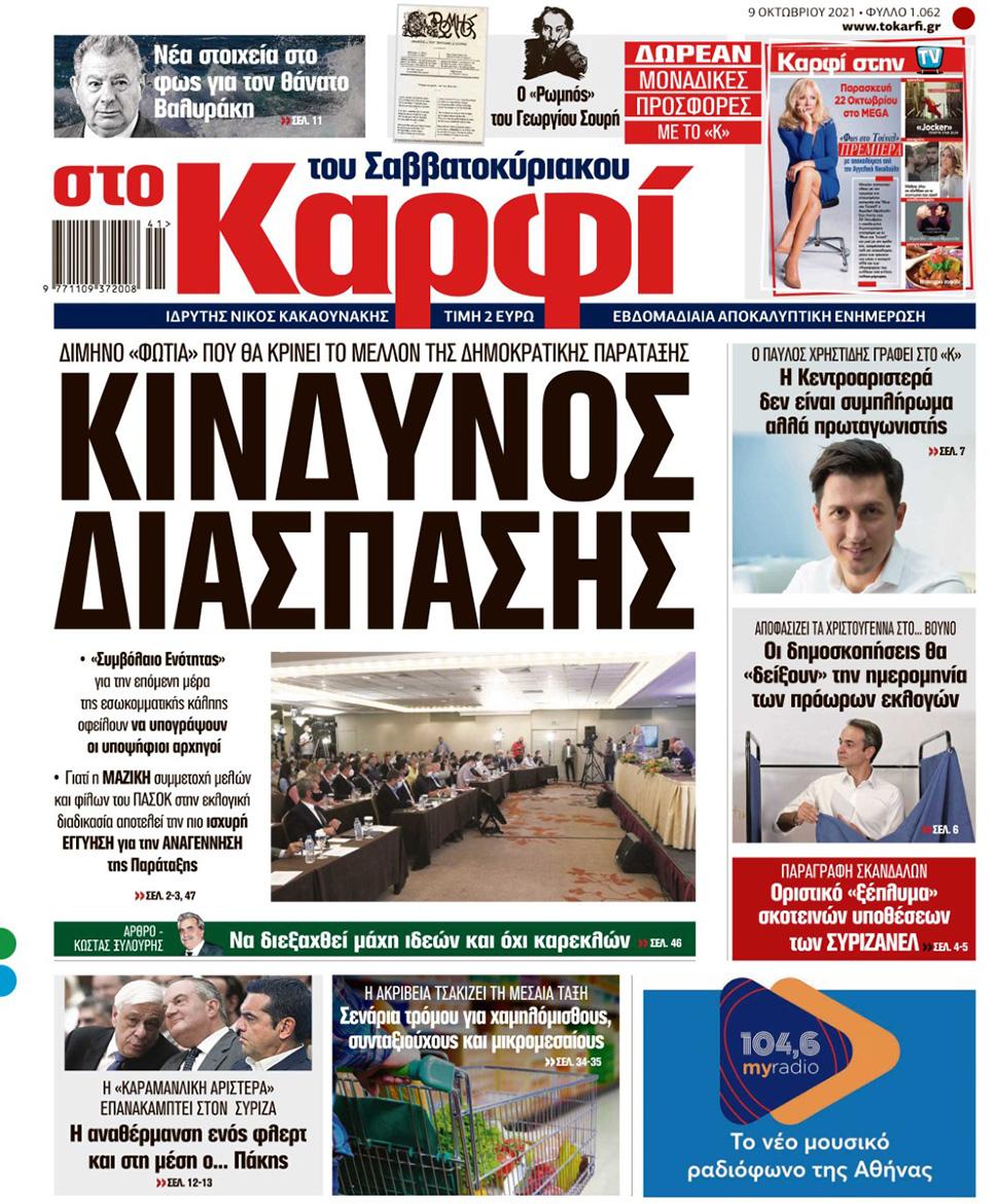 Μη χάσετε το Σάββατο 9 Οκτωβρίου 2021, το αποκαλυπτικό «ΚΑΡΦΙ» που κυκλοφορεί σε όλα τα περίπτερα της χώρας με πλούσια θεματολογία και πολλές αποκλειστικότητες.