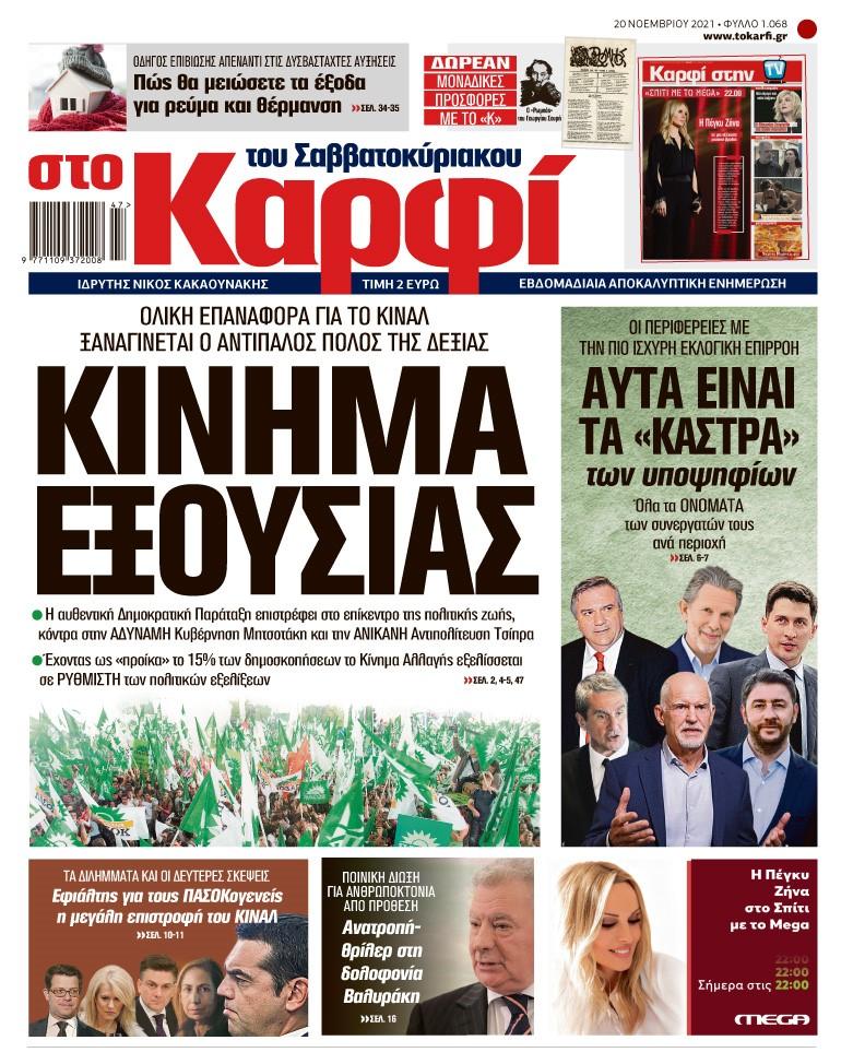 Μη χάσετε το Σάββατο 20 Νοεμβρίου 2021, το αποκαλυπτικό «ΚΑΡΦΙ» που κυκλοφορεί σε όλα τα περίπτερα της χώρας με πλούσια θεματολογία και πολλές αποκλειστικότητες.