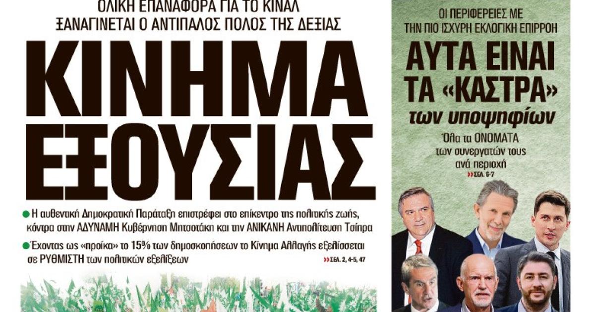 - Έχοντας ως «προίκα» το 15% των δημοσκοπήσεων το Κίνημα Αλλαγής εξελίσσεται σε ΡΥΘΜΙΣΤΗ των πολιτικών εξελίξεων