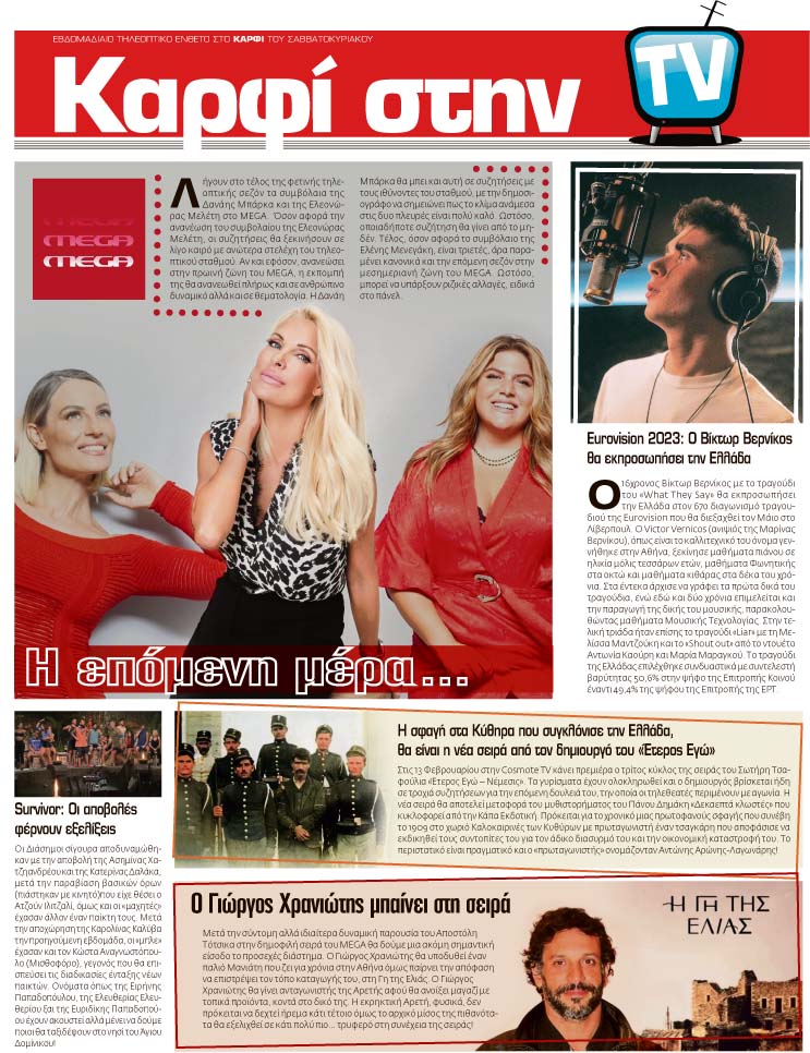Μη χάσετε το Σάββατο 4 Φεβρουαρίου 2023 το αποκαλυπτικό «ΚΑΡΦΙ» που κυκλοφορεί σε όλα τα περίπτερα της χώρας με πλούσια θεματολογία και πολλές αποκλειστικότητες.