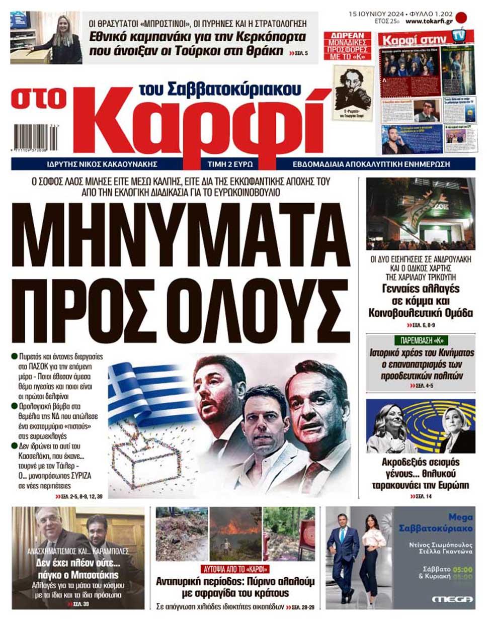 Μη χάσετε το Σάββατο 15 Ιουνίου 2024 το αποκαλυπτικό «ΚΑΡΦΙ» που κυκλοφορεί σε όλα τα περίπτερα της χώρας με πλούσια θεματολογία και πολλές αποκλειστικότητες.