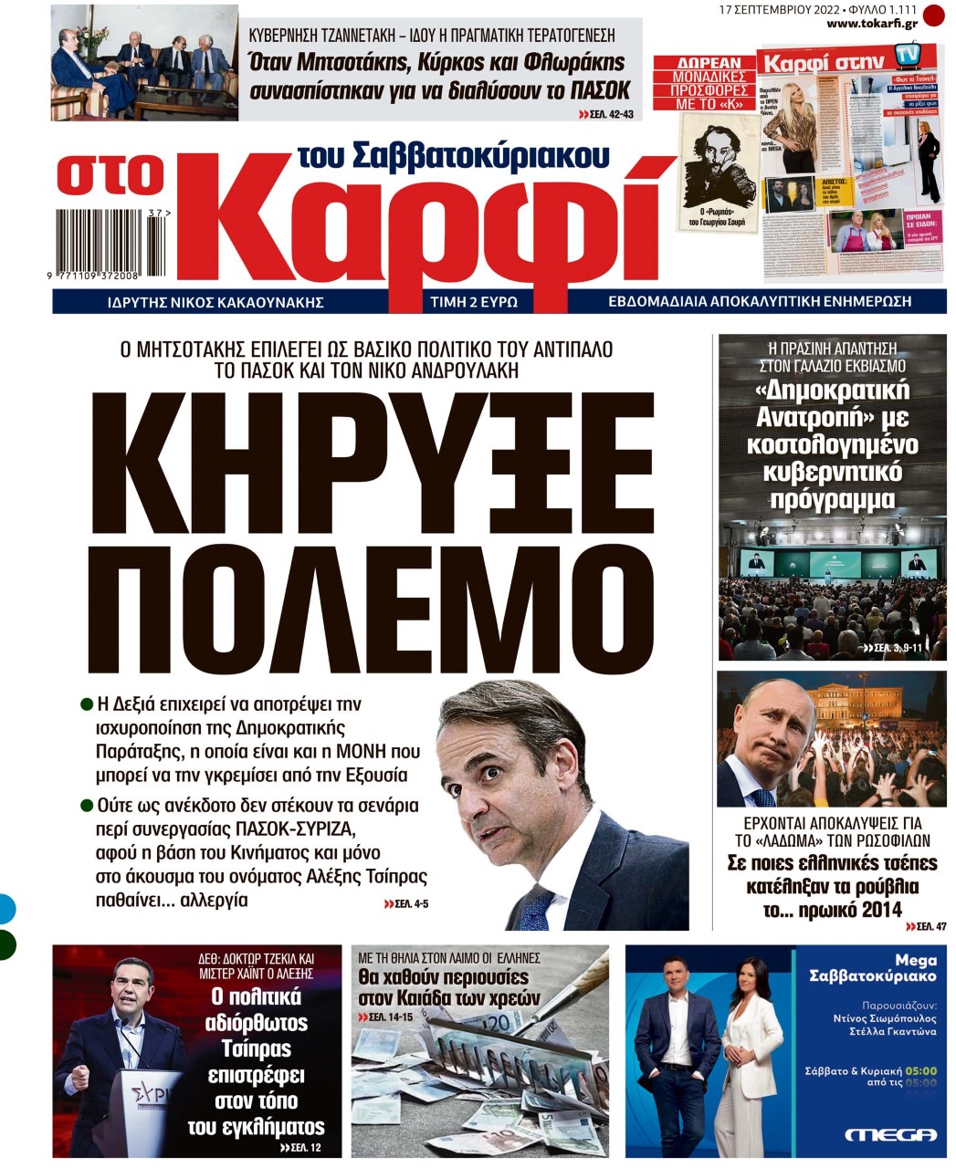 Μη χάσετε το Σάββατο 17 Σεπτεμβρίου 2022 το αποκαλυπτικό «ΚΑΡΦΙ» που κυκλοφορεί σε όλα τα περίπτερα της χώρας με πλούσια θεματολογία και πολλές αποκλειστικότητες.