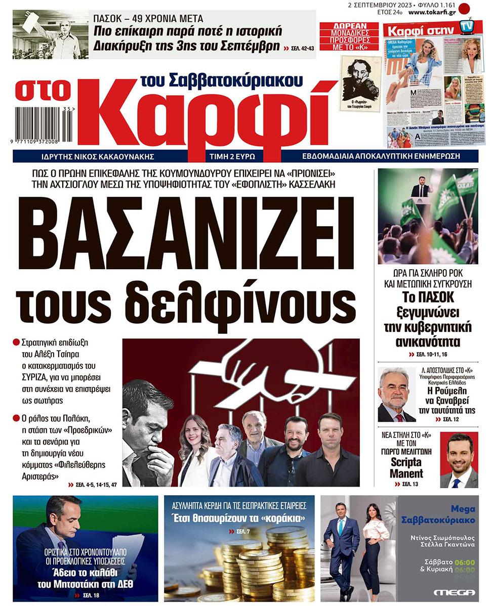 Μη χάσετε το Σάββατο 2 Σεπτεμβρίου 2023 το αποκαλυπτικό «ΚΑΡΦΙ» που κυκλοφορεί σε όλα τα περίπτερα της χώρας με πλούσια θεματολογία και πολλές αποκλειστικότητες.