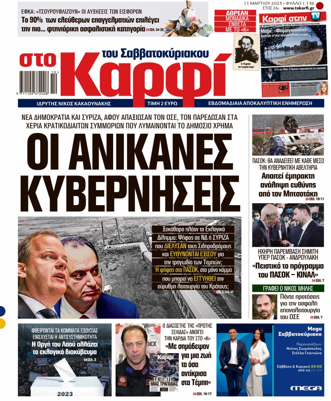 Μη χάσετε το Σάββατο 11 Μαρτίου 2023 το αποκαλυπτικό «ΚΑΡΦΙ» που κυκλοφορεί σε όλα τα περίπτερα της χώρας με πλούσια θεματολογία και πολλές αποκλειστικότητες.