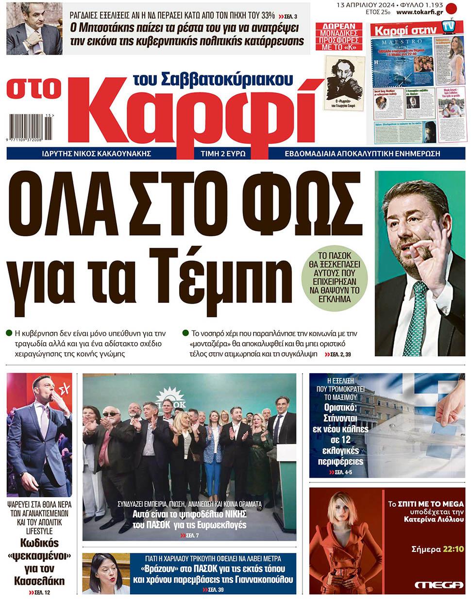 Μη χάσετε το Σάββατο 13 Απριλίου 2024 το αποκαλυπτικό «ΚΑΡΦΙ» που κυκλοφορεί σε όλα τα περίπτερα της χώρας με πλούσια θεματολογία και πολλές αποκλειστικότητες.