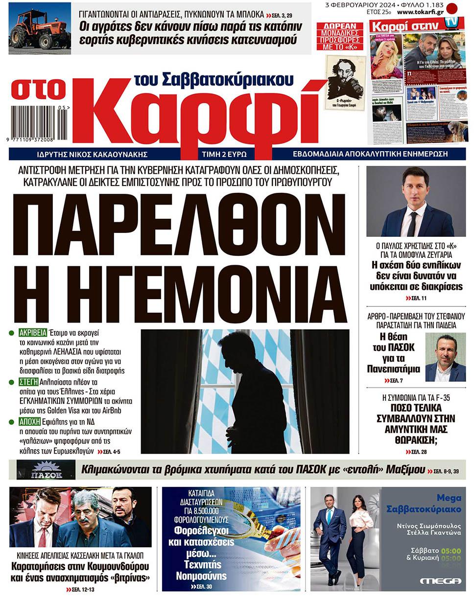 Μη χάσετε το Σάββατο 3 Φεβρουαρίου 2024 το αποκαλυπτικό «ΚΑΡΦΙ» που κυκλοφορεί σε όλα τα περίπτερα της χώρας με πλούσια θεματολογία και πολλές αποκλειστικότητες.