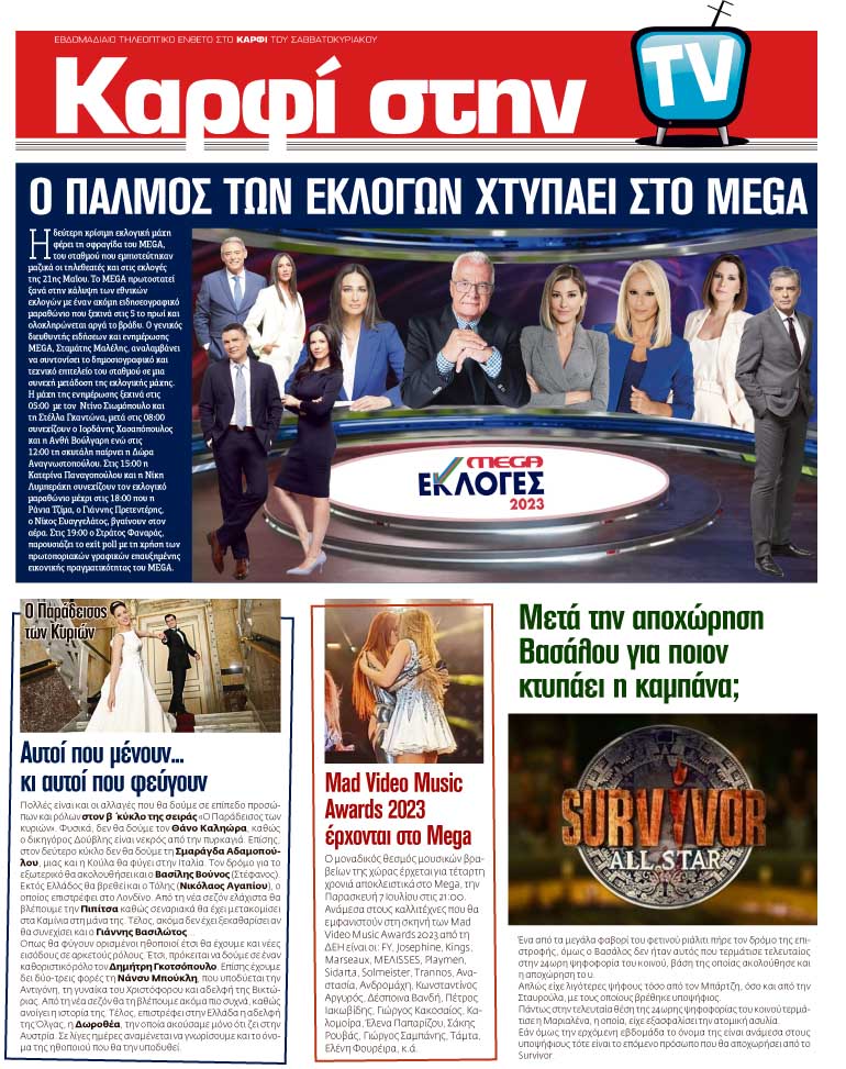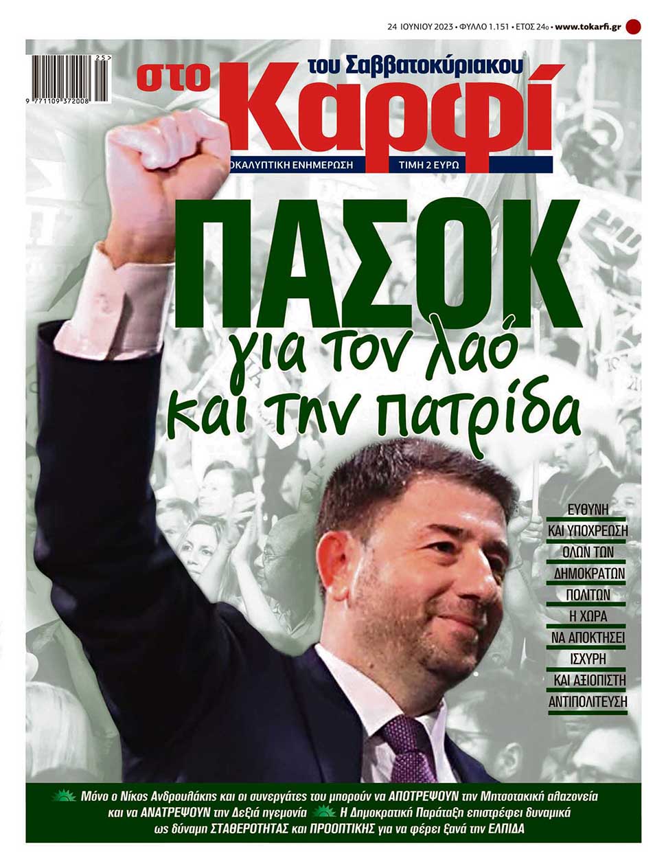 Μη χάσετε το Σάββατο 24 Ιουνίου 2023 το αποκαλυπτικό «ΚΑΡΦΙ» που κυκλοφορεί σε όλα τα περίπτερα της χώρας με πλούσια θεματολογία και πολλές αποκλειστικότητες.