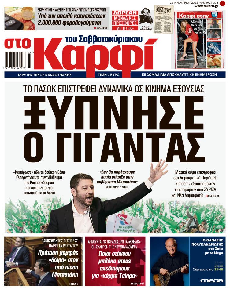 Μη χάσετε αυτό το Σάββατο 29 Ιανουαρίου 2022 το αποκαλυπτικό «ΚΑΡΦΙ» που κυκλοφορεί σε όλα τα περίπτερα της χώρας με πλούσια θεματολογία και πολλές αποκλειστικότητες