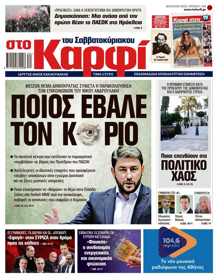 Μη χάσετε το Σάββατο 30 Ιουλίου 2022 το αποκαλυπτικό «ΚΑΡΦΙ» που κυκλοφορεί σε όλα τα περίπτερα της χώρας με πλούσια θεματολογία και πολλές αποκλειστικότητες.