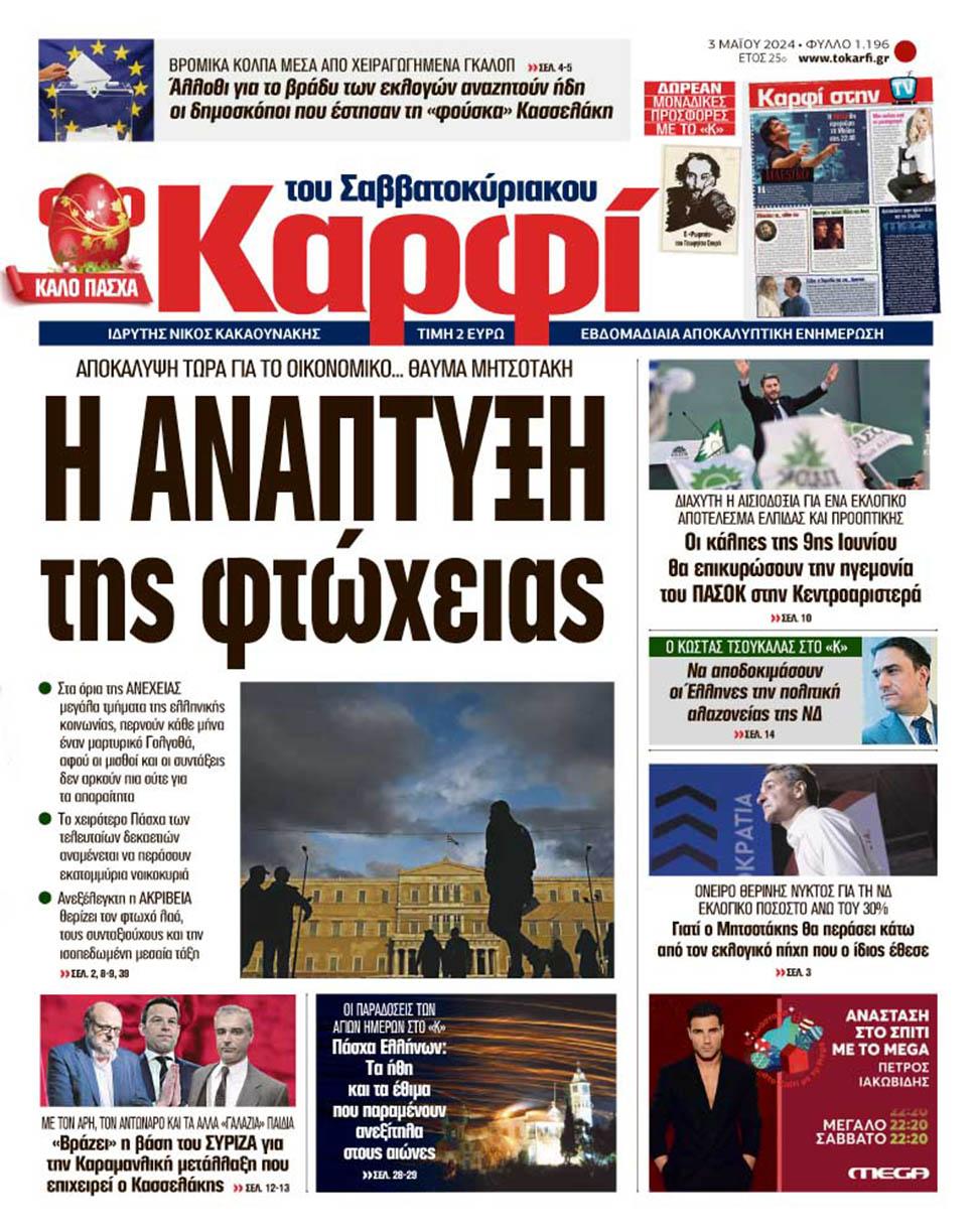 Μη χάσετε εκτάκτως την Μ. Παρασκευή 3 Μαΐου 2024 το αποκαλυπτικό «ΚΑΡΦΙ» που κυκλοφορεί σε όλα τα περίπτερα της χώρας με πλούσια θεματολογία και πολλές αποκλειστικότητες.
