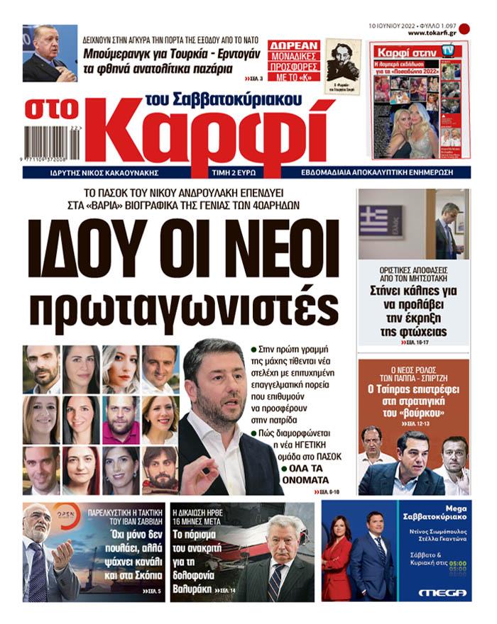 Μη χάσετε εκτάκτως την Παρασκευή 10 Ιουνίου 2022 το αποκαλυπτικό «ΚΑΡΦΙ» που κυκλοφορεί σε όλα τα περίπτερα της χώρας με πλούσια θεματολογία και πολλές αποκλειστικότητες.